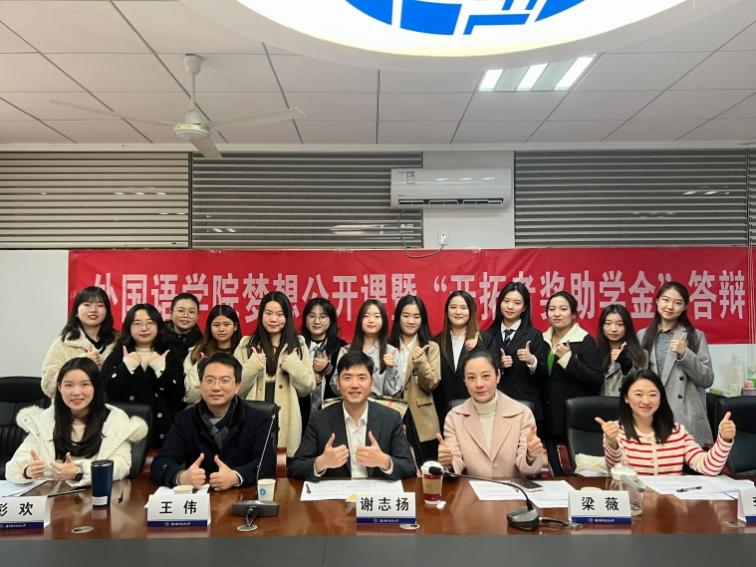 为激励外国语学院学生注重团队合作、积极进取、勇于担当、全面发展、成长成才,并资助家庭经济困难学生,学院2010届杰出校友冯科茗、谢志扬、单鹤在外国语学院设立“开拓者奖助学金”,并于12月9日成功举办外国语学院梦想公开课暨“开拓者奖助学金”答辩。开拓者奖助学金资助人谢志扬,外国语学院党委副书记梁薇,英语系副主任王伟,学院团委书记李萍,本科生辅导员彭欢、赵瑜瑶担任评委。公开课由学院2019级英语专业、2021年茗扬开拓者奖学金获得者张欣怡主持,学院各年级同学通过腾讯会议线上观摩。