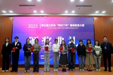 江苏省翻译协会会长刘成富在致辞中提及AI对翻译学科的挑战,认为“阿拉丁杯”翻译配音大赛是转化挑战的实践,呼吁江苏外语人用外语讲好中国故事、助力中国形象传播,秉持人类命运共同体理念与文明互鉴视野,扎实建设江苏外语学科,为中华民族伟大复兴交上满意答卷。