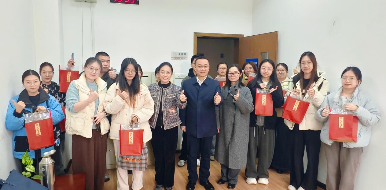 为鼓舞毕业班同学考研士气,坚定考研信心,缓解备考压力,12月11日中午,外国语学院组织开展2026届考研学生送温暖活动。学院党委书记庄群华、党委副书记吴科颖、教师代表周蕾、辅导员朱芸以及考研学生代表参加活动。